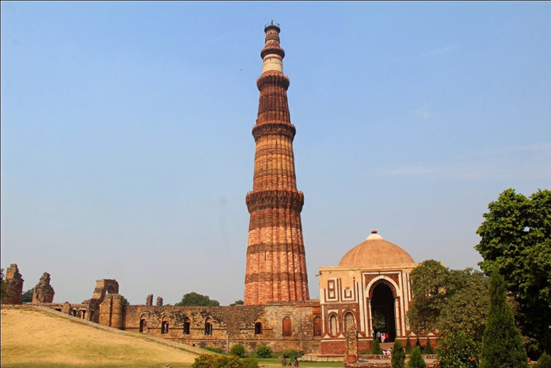 La visita, dopo innumerevoli scatti fotografici agli edifici governativi, prosegue con il Qutb, un insieme di antichi monumenti soffermandoci sul più importante Qutb Minar ossia il più alto minareto in mattoni del mondo.