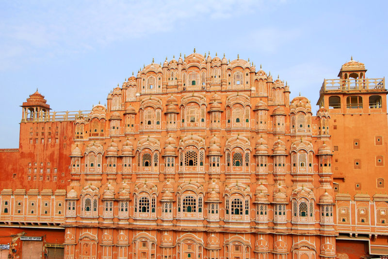 Di primo mattino, sosta al Palazzo dei Venti famoso per la sua incredibile facciata che secondo il volere del marajà doveva assomigliare alla corona di Khrishna, divinità alla quale era devoto. Per questo la facciata del palazzo fu costruita come un enorme alveare con 953 finestre con grate, guglie e piccole cupole dalle quali le signore osservavano il mondo esterno, elaborato e fantasioso ma nello stesso tempo limpido esempio d’arte orientale.