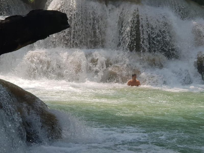 Il faticoso trekking termina a Ban Thapene, un villaggio situato proprio ai piedi delle cascate Khuang Sy: qui, circondati da una scenografia da paradiso naturale, immortaliamo il paesaggio con decine di foto e alla fine ci concediamo un bel bagno rinfrescante e rigenerante.