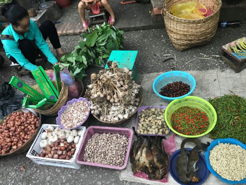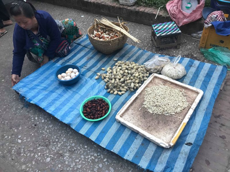Entusiasti ed emozionati, prima di rientrare in hotel approfittiamo per fare una passeggiata al “Morning Market ”, chiamato dai locali Ta Lad Sao, nel villaggio di Ban Pa Kham che si svolge dalle 5:30 fino a mezzogiorno ed anche qui ciò che vediamo ci lascia basiti e sarà sicuramente difficile da dimenticare. Vi assicura che si vede di tutto di più, e chi non ha lo stomaco forte rischia davvero di rimettere… rane, topi, anatre, lumache, lombrichi, tartarughe, anguille, granchi, serpenti, galline, animali sia vivi che morti!!!