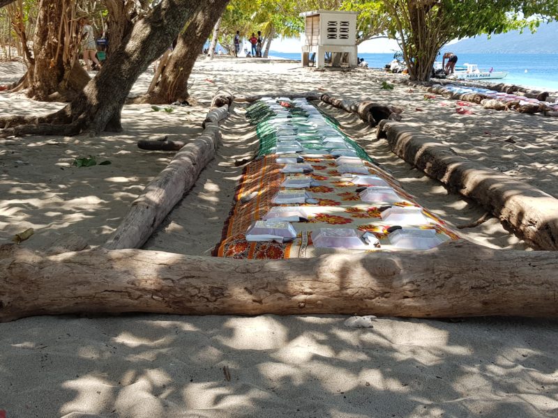 L’appuntamento è in spiaggia all’ora di pranzo, dove la nostra guida ci fa trovare una bella tavola apparecchiata piena di prelibatezze locali.